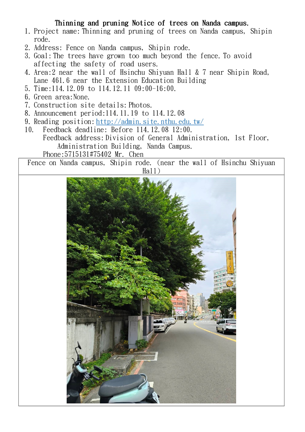 Three pruning Notice on Nanda campus.(114/12/09-114/12/11)